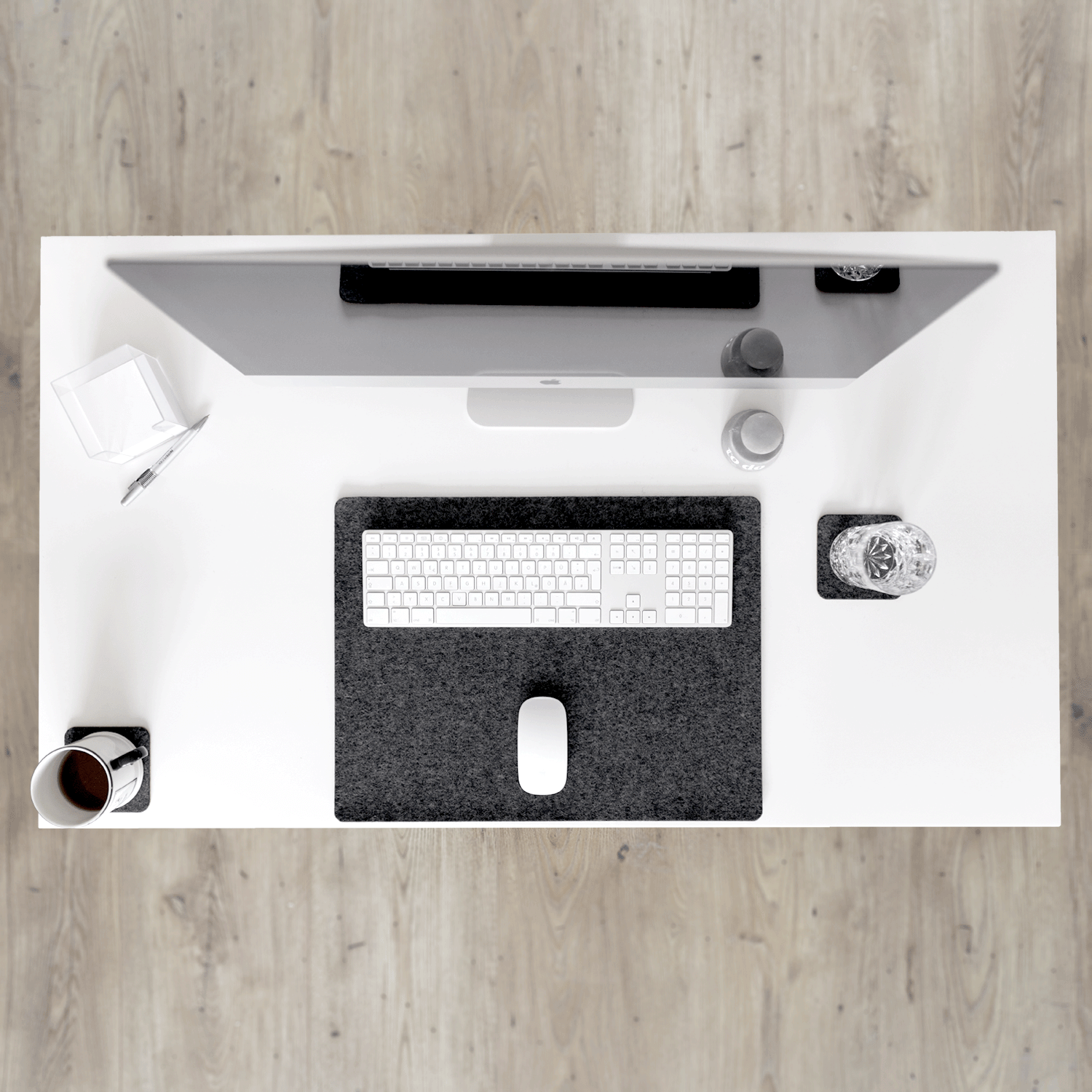 This mat creates clean lines and protects your desk with style. Working on the keyboard and mouse feels truly comfortable. No more cold wrists. Noise from typing and using the mouse is muffled.
