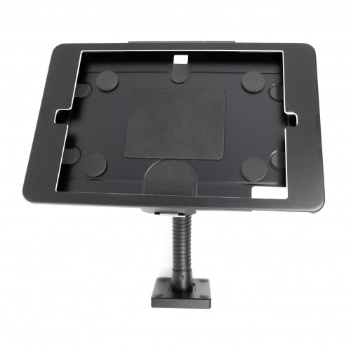 The SYSTEM-S desk mount stand offers a secure and flexible solution for your iPad Pro 12.9" (2018, 2020, 2021). Featuring a flexible holder arm, various display angle adjustment options, and a built-in lock, this mount is ideal for trade shows, exhibitions, retail stores, and many other applications.