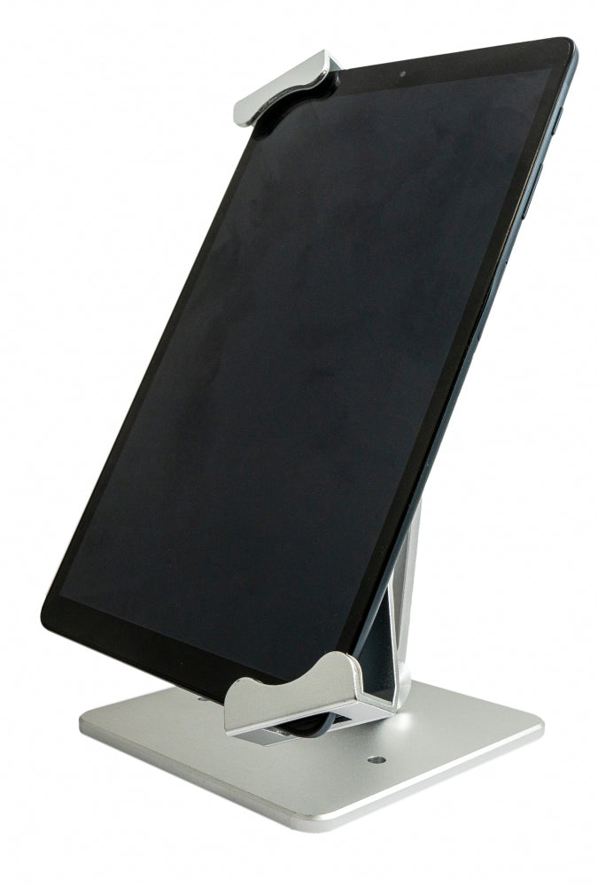 The SYSTEM-S table stand mount offers a secure and efficient solution for 10" tablets, ideal for trade shows, exhibitions, and retail spaces. Here are the detailed features: