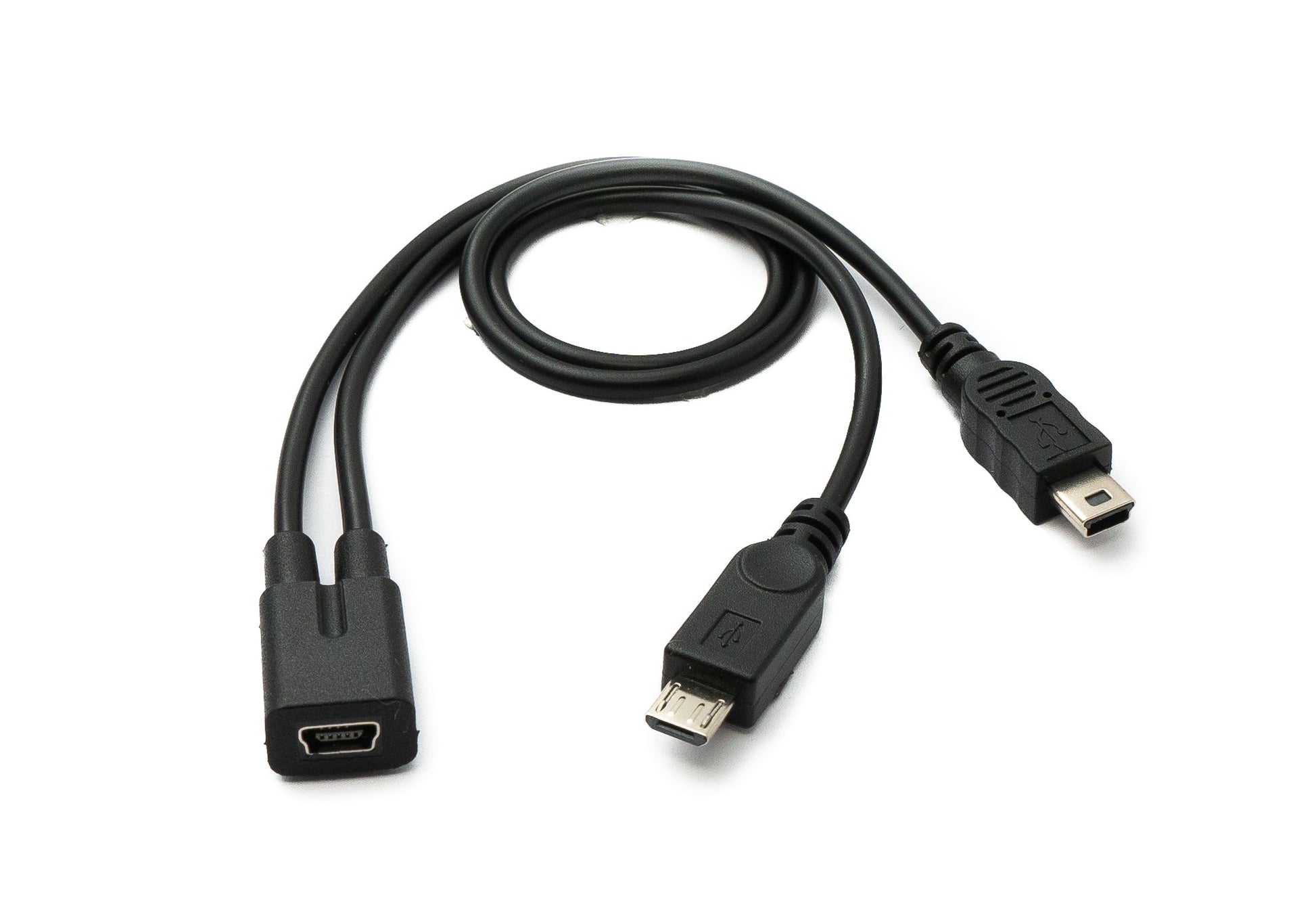 - Mini B socket to Mini B plug and Micro B plug