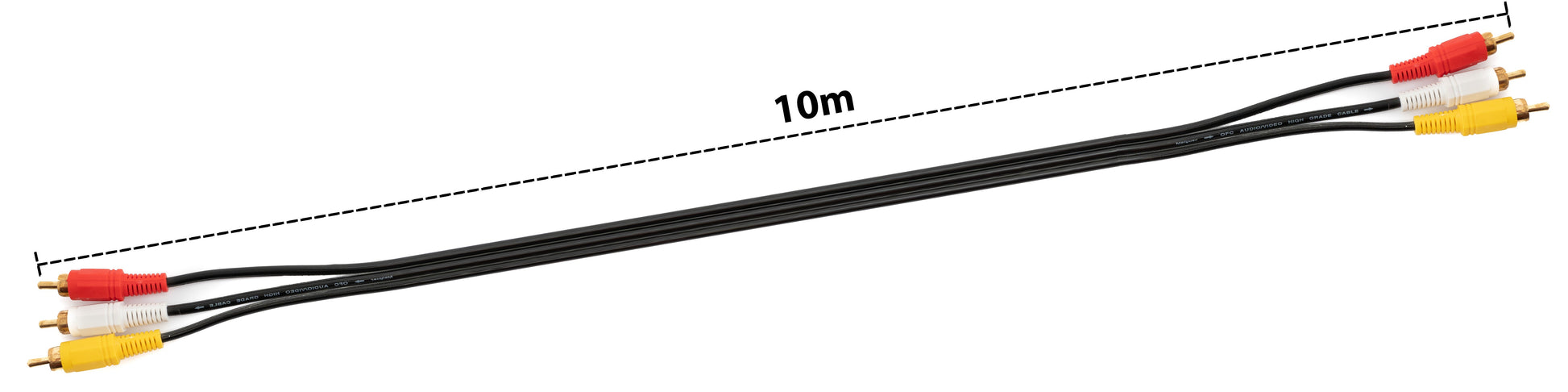 SYSTEM-S Cinch 3 RCA Kabel 10 m Stecker zu Stecker Stereo & Composite AV Schwarz