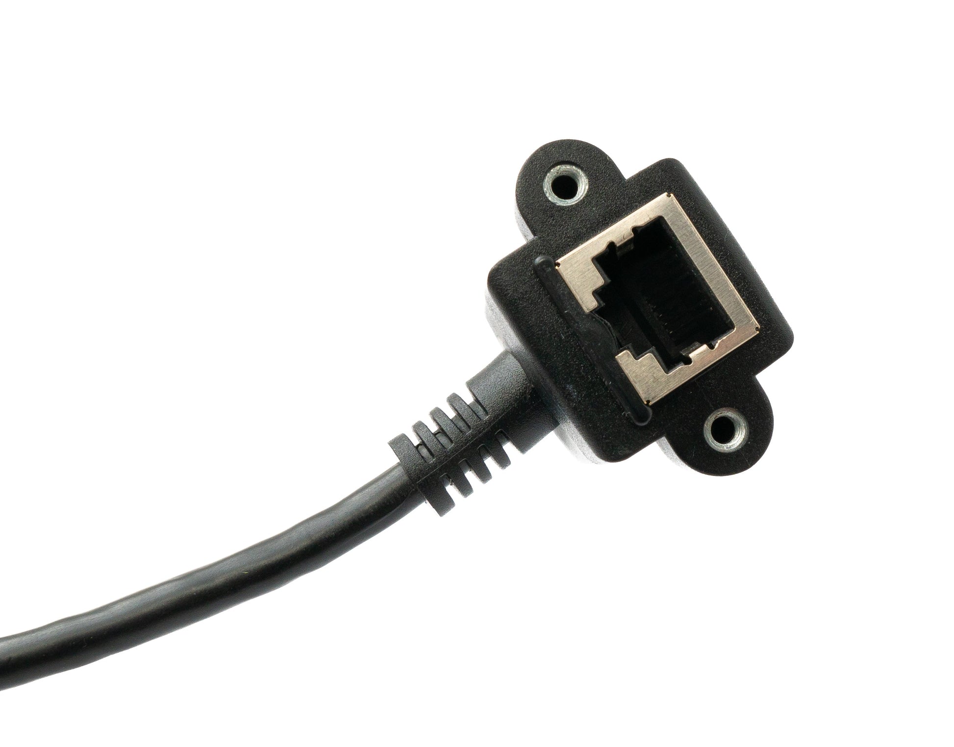 Buchse hat gewinkelte Bauweise (Up-Angled) - Buchse anschraubbar (Schrauben mitgeliefert)