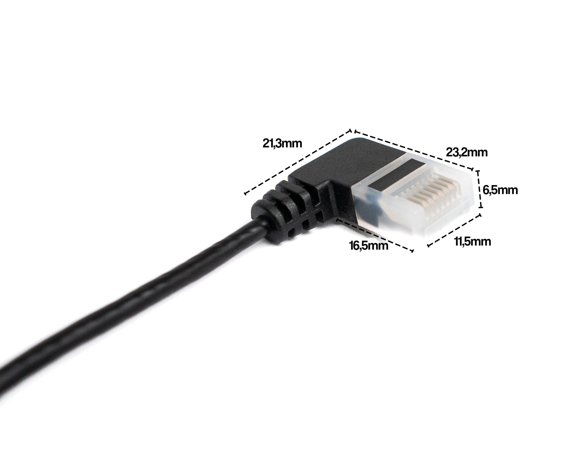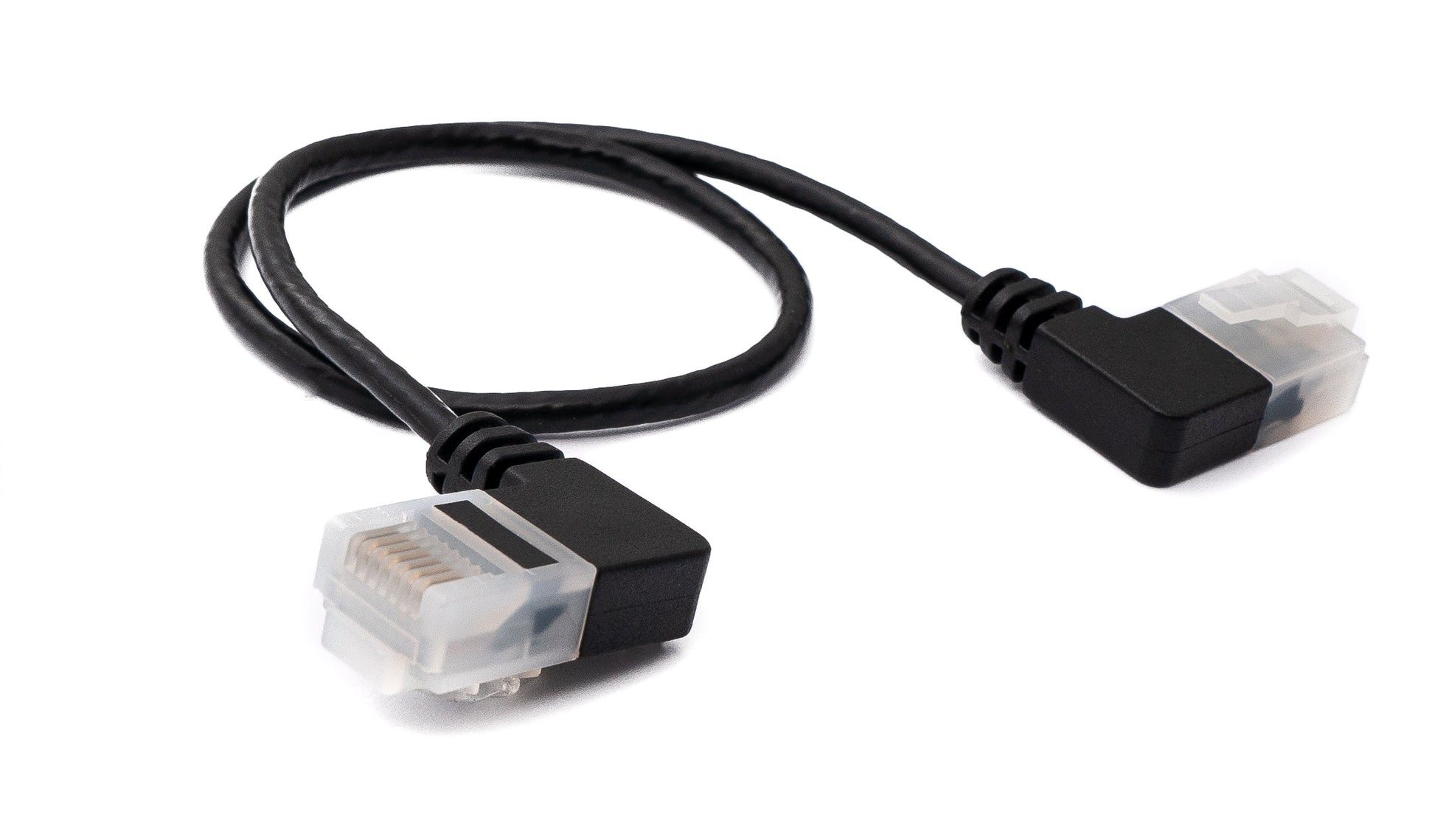 Rechtsgewinkelte Bauweise: Beide Anschlüsse des Kabels sind rechtsgewinkelt, was eine flexible und platzsparende Installation ermöglicht. Diese Bauweise ist besonders praktisch in Situationen, in denen wenig Platz für gerade Kabelverbindungen vorhanden ist.