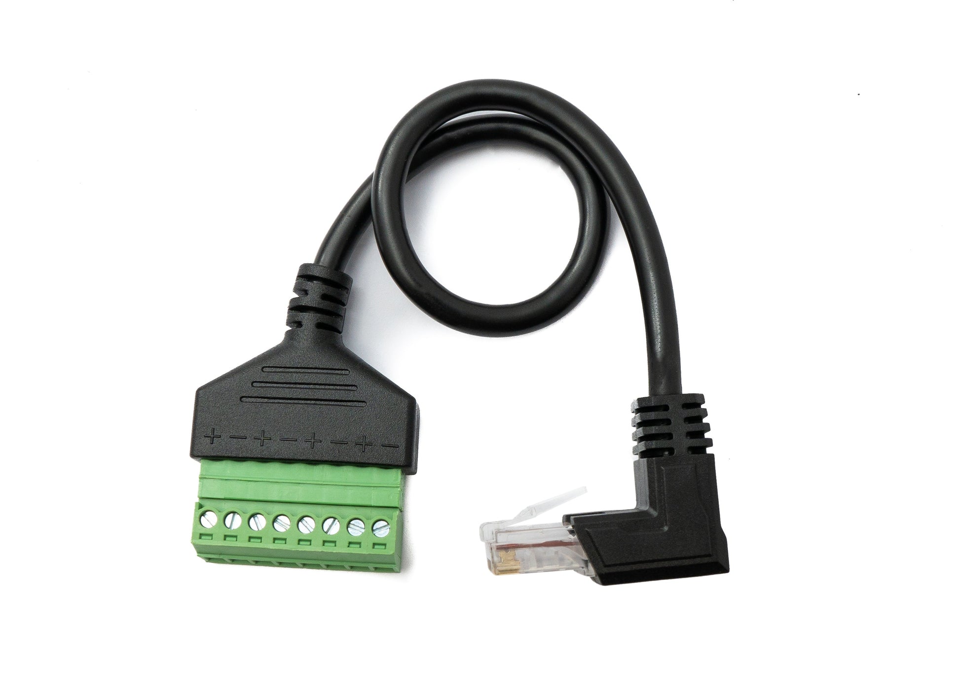 SYSTEM-S LAN Kabel 30 cm RJ45 Stecker zu 8 pin Terminalblock Winkel in Schwarz