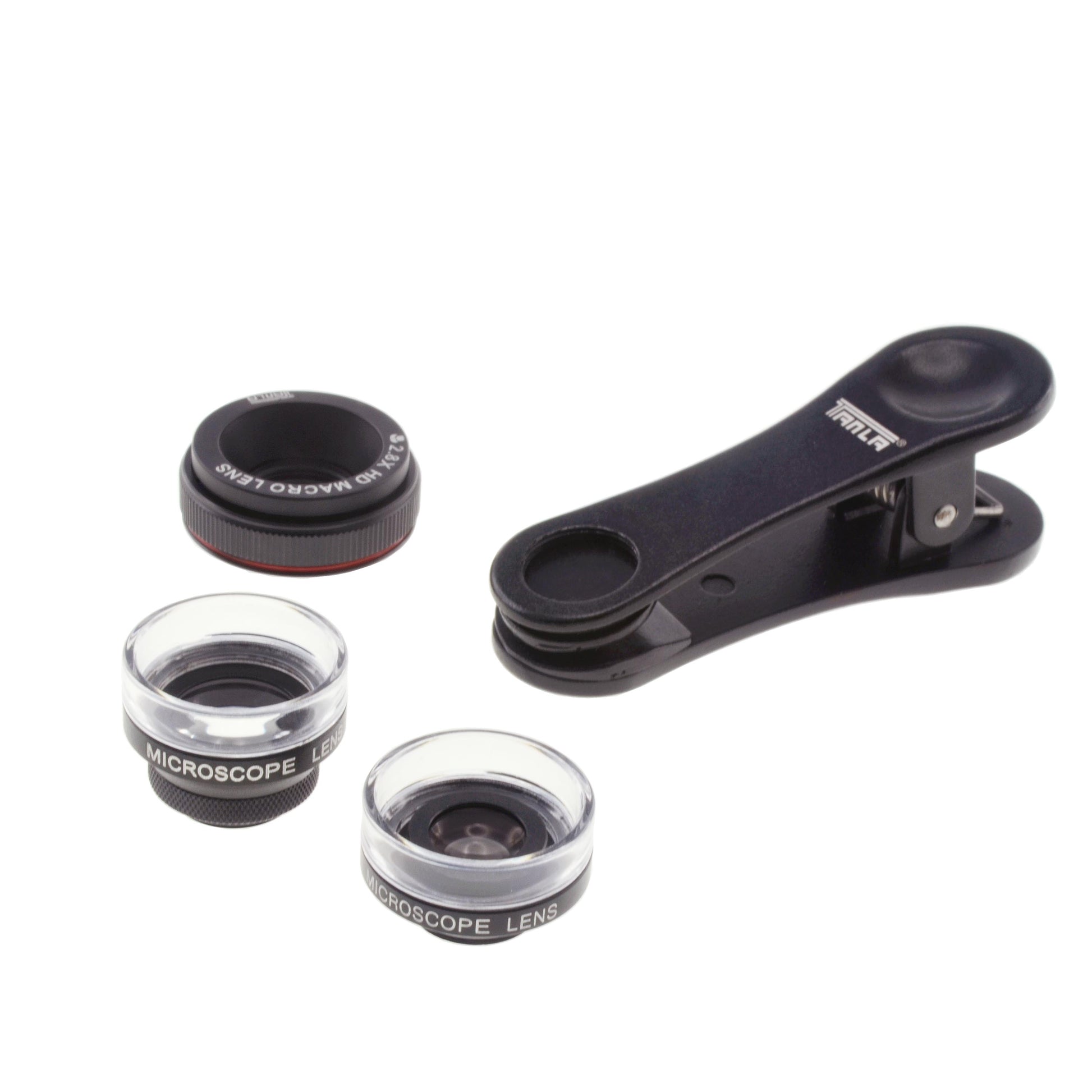 - Drei verschiedene Linsen: Das Set enthält drei verschiedene Makro-Linsen: eine 2,8-fache HD-Makrolinse, eine 20-fache Mikroskoplinse und eine 30-fache Supermikroskoplinse. Mit diesen Linsen können Sie beeindruckende Nahaufnahmen mit verschiedenen Vergrößerungsstufen machen.