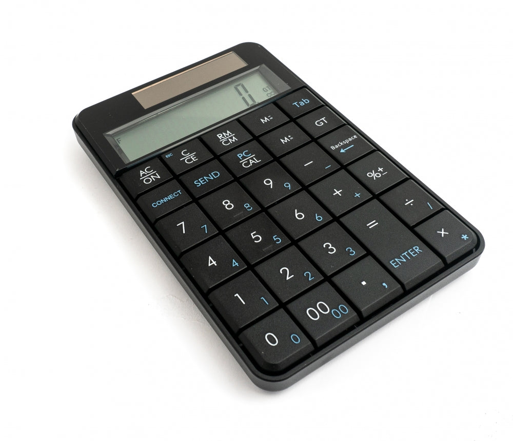 2 in 1 Design: Es vereint einen drahtlosen Ziffernblock mit 29 Tasten und einen Taschenrechner in einem kompakten Gerät.