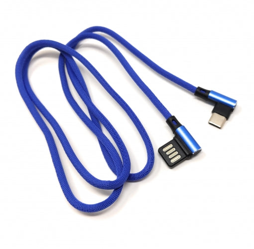 SYSTEM-S USB Typ C 3.1 Nylon Kabel auf umkehrbarer USB Schnittstelle Typ A 2.0 90° Grad gewinkelt in Blau 97 cm